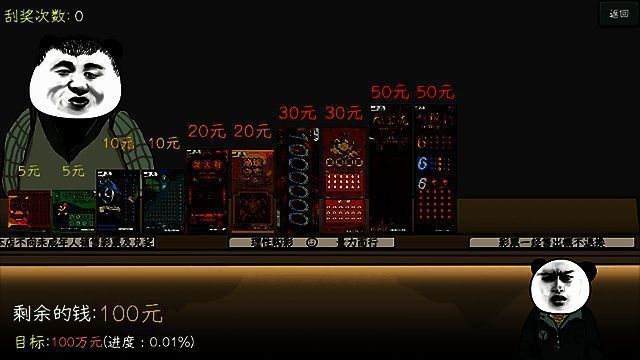 中国式彩票是一款彩票模拟器手游,游戏中融合了网游中所有的氪金玩法,然后通过模拟的方式,让玩家可以深度体验到氪金大佬的快乐,游戏还以抽奖、转盘、宝箱等形式出现多种模式呈现,玩家通过花费游戏内资源或真实货币,获取未知的随机奖励。游戏通过巧妙的设计,拥有大量休闲玩法,游戏中玩家可以自由的购买彩票,在游戏中体验刮奖的快乐,游戏中采用的搞笑的图案和角色设计,玩家可以体验趣味玩法。