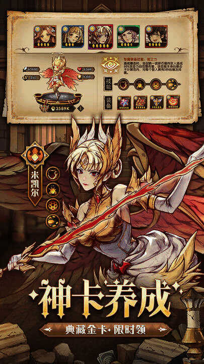 游戏以卡牌为核心,玩家可通过召唤、升级、合成等途径获取强力卡牌。每张卡牌技能属性独特,玩家需依据战斗场景和敌人灵活运用,发挥最大战力。剧情丰富,各章节有精彩故事,挑战难度渐增。