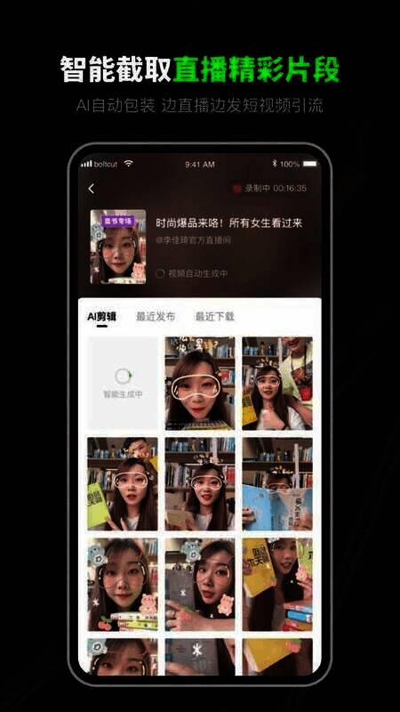 它具备智能截取功能,能快速创作出直播的精彩片段并进行编辑,可实现短视频的批量生产,让用户创作热门内容就像写文档一样轻松。