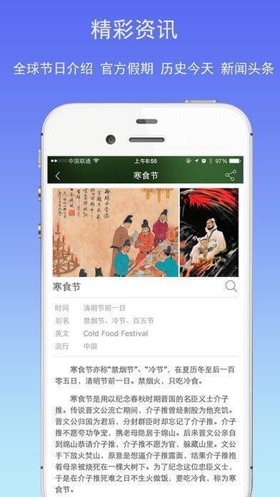 2、【全球节假日】中国,香港,台湾,新加坡,韩国,英国,美国等十几个国家和地区的节日,官方假期全知道,涵盖全球数百个节日,每个节日都配有精美解说,是您了解世界民俗的窗口!