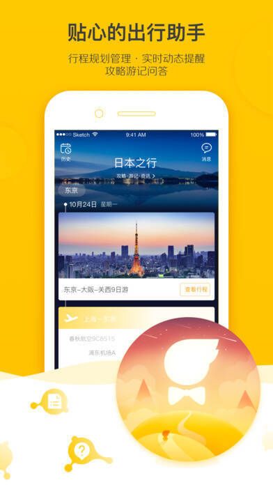 旅行日程:可统一管理出行计划,查阅当地周边信息,查看每日路线地图,轻松导入外站行程,离线查看更便捷;能查看历史行程,分享行程给朋友或再次预订;在语言不通的国家,可展示问路卡和地图描述目的地。