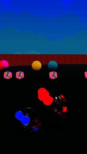 1、竞技过程中,除了比拼速度,还能在规定场地内收集道具并进行对撞。