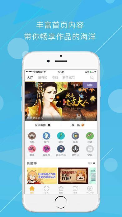 2、海量作品随心选;拥有3000万用户,每个人都有机会成为作者。