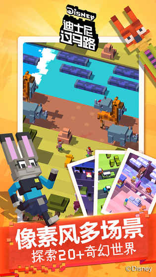 《迪士尼天天过马路 Disney Crossy Road》是由disney和《天天过马路 Disney Crossy Road》的开发商HIPSTER WHALE合作推出的新游戏。玩家能操纵各路经典迪士尼卡通角色在车流中快速穿越。