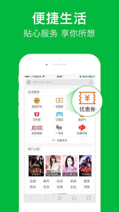这款最流行的手机浏览器,超500万人在使用。速度极快,瞬间就能抵达网页。能帮你节省60%的流量,让你上网不再有顾虑。免费追小说、追剧,轻松打发时间。