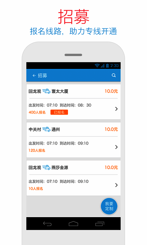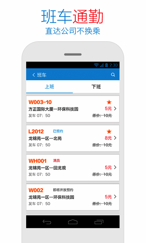 1. 专座出行:一人一座,出行舒适;2. 线路定制:定制线路,助力专线开通;3. 班车通勤:直达公司,无需换乘;4. 车辆定位:实时掌握车辆动态。