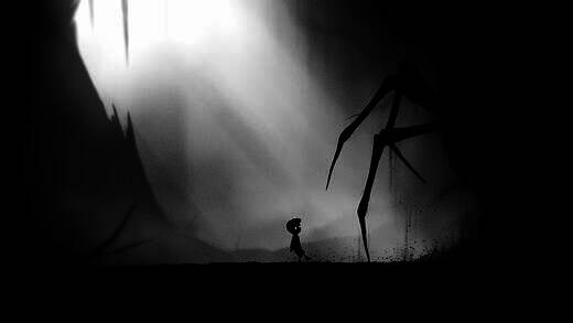小男孩在森林中苏醒,发现自己身处地狱边缘,这是一个黑白的世界,四周漆黑寂静,唯有小男孩的双眼散发着白色光芒。初次看到画面,模糊的雾气和斑驳的杂讯效果,会让玩家感到沉重压抑。游戏中没有背景音乐,偶尔出现的风声、脚步声和机械运转声,更凸显出一种不寻常的寂静。正是这种独特的氛围,勾起玩家的探索欲望:这是什么地方?小男孩为何在此?前方又会有什么等待着他?游戏通过独特的黑白美学和音效表现,营造出阴郁的氛围,若少了这股氛围,游戏的吸引力将大打折扣。