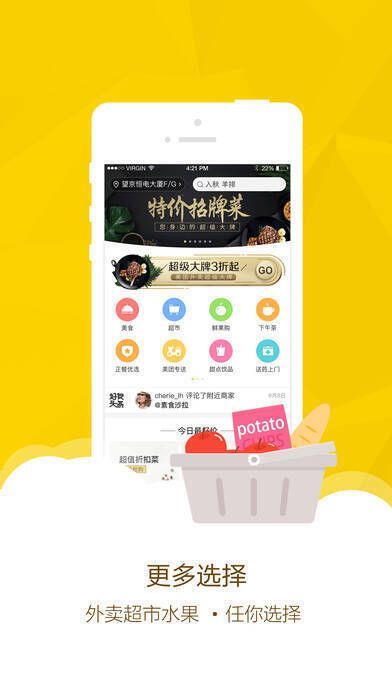 优惠力度远超其他同类平台,品类齐全,无论是商务快餐、烧烤夜宵,还是水果蔬菜、超市零食等,全部送货上门!