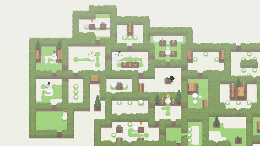 玩法简单,在格子组成的花园里,玩家要把三个不同大小的雪球从高到低、由小至大依次叠放。但雪球滚过雪地会变大,盲目让雪球都变大就堆不成雪人,尤其后期难度增加,每步都需深思。