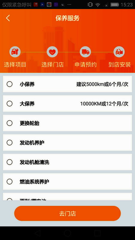 - 可在车轻松养车选择不同商家服务,像 4S 店、维修厂等。