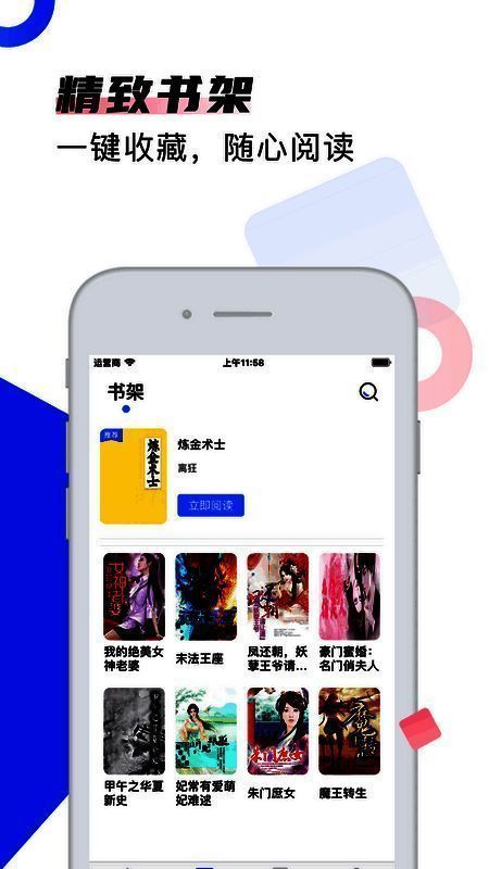 3、精致书架,一键收藏,随心阅读:例如《我的绝美女神老婆》《末法王座》等。
