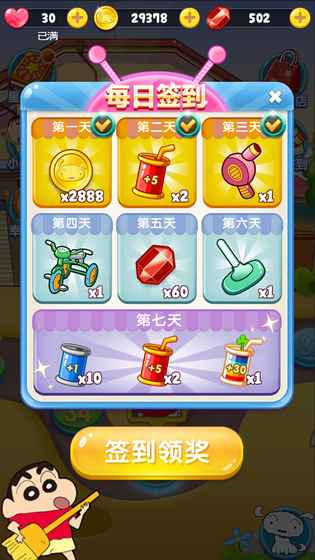 2、陪伴小新和小伙伴经历险阻,完成精彩关卡。