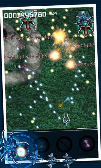 2、采用3D效果制作,玩家能看到充满未来科技感的太空战机,以及璀璨夺目的弹幕效果,射击过程宛如艺术,让人陶醉其中。