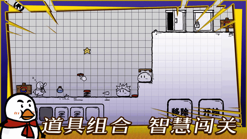 3. 运用智慧将道具放于合适位置,帮助勇往直前的肥鹅。