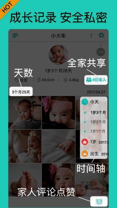 拥有不限量银行级的安全备份空间,照片可永久保存,帮你释放手机空间。致力于打造宝宝专属的时光小屋和照片空间,永久记录宝宝成长道路上最温馨的时刻。添加宝宝照片后,可永久备份并同步给家庭成员,还能给照片添加文字记录,让育儿的爸妈们不再担心宝宝照片丢失或手机存储空间不足。