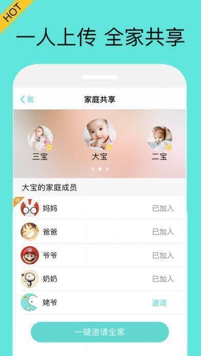 记得将宝宝的爷爷奶奶、外公外婆加入家庭共享,这样即使老人在远方也能第一时间关注宝宝成长和长相变化。