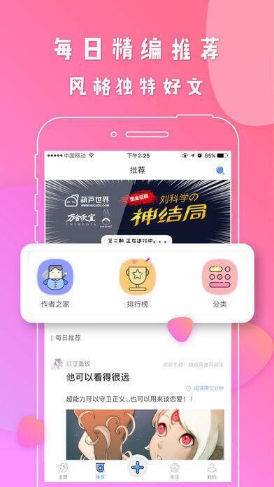 看文时可发弹幕,带来独特的弹幕阅读感受。若觉得长篇太累,有大量短篇美文;短篇不过瘾,也有大量长篇连载。此外,看腻文字创作,还有漫画创作可供选择。