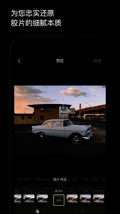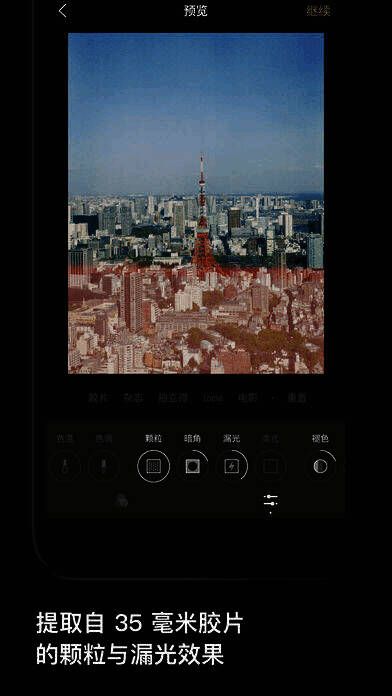 4、萃取21款传统胶卷滤镜,搭配褪色、亮度、对比度等高级功能,可还原各种影像风格。