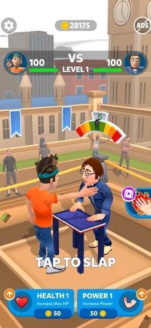 扇巴掌模拟器采用3D卡通风格呈现游戏,当你给出最后一击把目标从擂台上扇飞时,周围会有大量人群为你加油助威。完成任务和获胜都能获得金币,通过不断闯关,能让你的实力飞速提升。先提升自身血量,只要比对手更耐打,获胜就轻而易举。