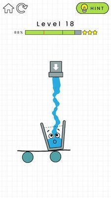 玩家画线让水接满玻璃杯,操作看似简单,可每关都拿三星需好好动脑筋。