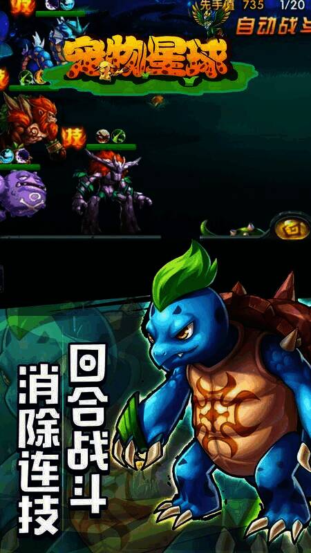 《宠物星球》是一款以精灵为题材的回合制微创新操作手游,将回合战斗与消除相结合,释放组合技的战斗形式,给玩家带来全新游戏体验。游戏内有 7 大类元素,每个精灵有指定元素,玩家可根据元素划分获得强力组合技,再结合组合技效果和精灵技能搭配阵容。