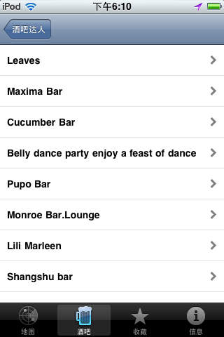 2、酒吧指南,超过70间不同种类的酒吧,你只需选择所在区域,就能获取该区域酒吧的具体信息。