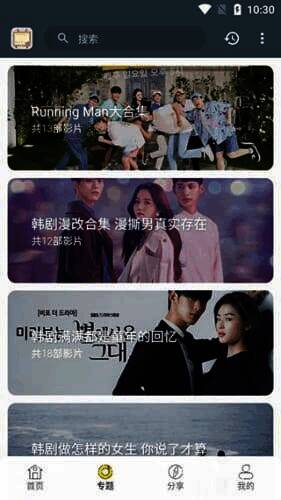这是一款为韩剧爱好者量身定制的影视回放软件,设有电影、电视剧等频道,能带来全方位的观影体验。支持离线缓存,方便随时观看;还能添加到收藏夹,便于下次快速找到。软件收藏了大量韩国综艺节目,点击想看的影片即可开始播放,画面清晰、播放稳定。