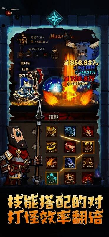 1. 放置模式搭配强烈冲击感,屏幕上呈现华丽技能效果与爆炸伤害数字。