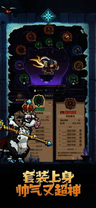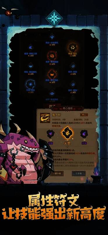 2. 有多种成长路径可选,技能、符文和布景能自由组合。