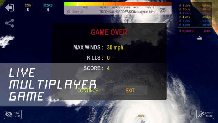 游戏开局,玩家只是一团毫不起眼的云,目标是成长为超级飓风。在此期间,玩家要持续吸收地球上的能量,同时会遭遇来自世界各地的强劲对手,他们时刻都想吞并你。能量来源于空气中或海面上的水和热能,猎杀比自己规模小的飓风能让自身快速成长。飓风在海面是理想的生存环境,陆地会消耗能量,但要是足够强大,便没有什么能阻挡你。