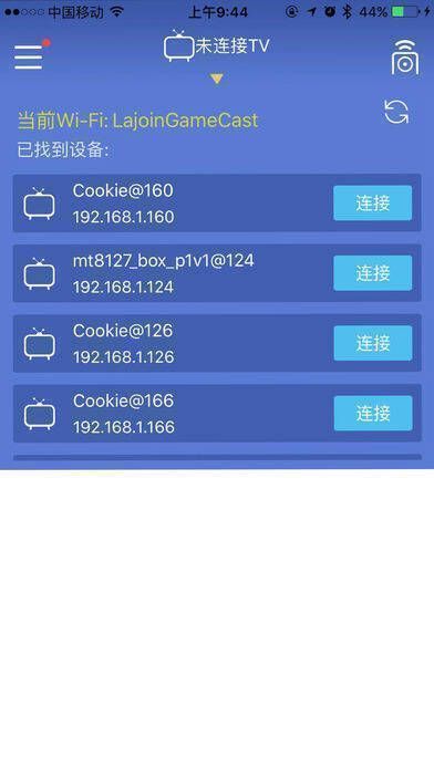 3. 打开手机上的辣椒快打,软件会自动发现并连接智能电视设备。