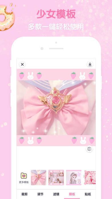 有数十款精心搭配的贴纸,轻轻一点,就能给图片换上各种模板装饰,如同为图片换上少女新装,一键变得甜美可爱。