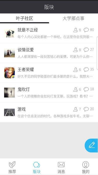 《叶子社区》是一款生活类软件,它主打即时享乐式的聊天体验。在这个社区里,用户能够分享自己觉得好玩、好看的动态,加入各类话题畅快聊天,尽情探索快乐。这里有好玩的段子,能让忙碌工作的人们寻得一丝快乐。