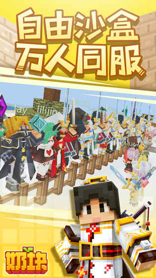 《奶块》是国内首款大型沙盒RPG社交手游,采用开放世界、万人同服模式,玩家可共同创造个性世界。它类似于《我的世界》,玩法也相近,全程联网,属于生存模式,可玩性和自由性极高。玩家既能挑战BOSS,也能用奇思妙想建造各种建筑,成为游戏中的大神,受其他玩家膜拜。