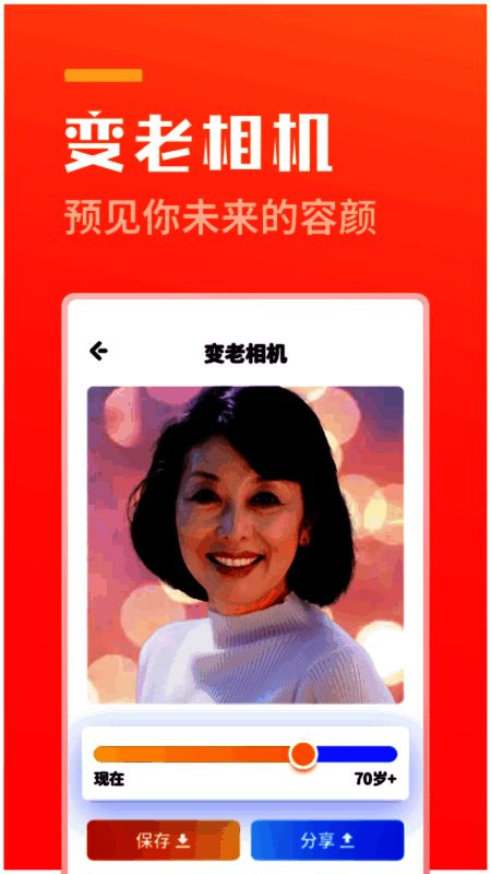 3、定时摄像功能可让你提前感受 50、60、70 岁的模样,带来丰富的摄像体验。