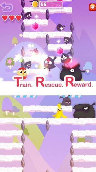 这是一款清新可爱的竖版跳跃冒险游戏。要是你对自己指尖的反应力有十足的自信,不妨挑战一下,看看能闯到第几段BOSS。你就是那只传说中唯一能击败猩猩的小黄鸡,独自一人蹦上云霄,去寻找邪恶的猩猩和被囚禁的同伴。还能让女仆狠狠踢爆猩猩的屁股,记得回来和我们分享你的成绩哦!