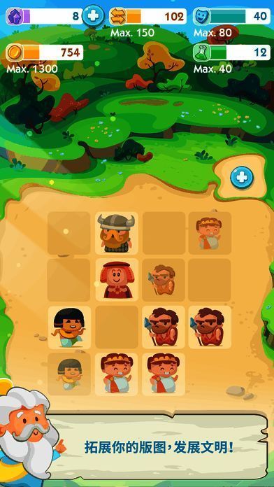 这是一款描绘时代变迁的游戏。通过滑动操作,将相同人类阶段的角色合在一起,能让人类从穴居人逐步进化为学者。在这个易学难精的游戏里,建造人类伟大奇迹,扩大自己的版图。游戏画风清爽简洁,玩法有趣,只需手指在屏幕滑动,把两个相同角色放一起就能合成更强角色。