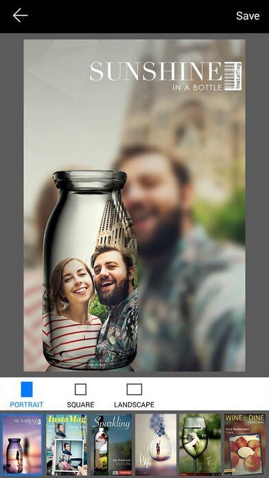 - 经典画中画:有瓶子系列、相纸系列、简约风、卡通风等多样风格,挑模板、选照片两步即可完成创意拼图,一键分享到朋友圈。