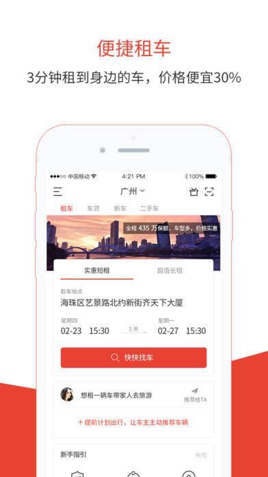 快快优车APP归属于广州车享客网络科技有限公司,是国内新锐的一站式汽车金融及服务平台,为广大用户提供从租车、买车到用车的一站式便捷服务。