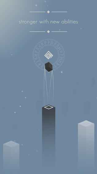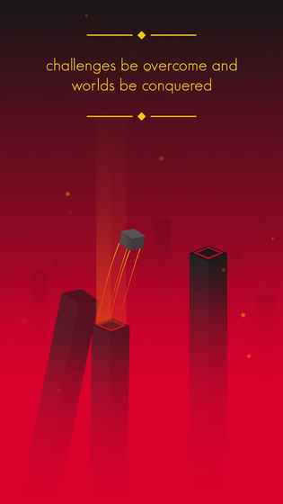 游戏目标就是控制小方块在悬空柱子顶端跳跃,跳得越远越好。玩家需控制好小方块跳跃的力度和角度,这两点在准备行动时会通过它前方的黑点虚线和后方的弧线体现,留意查看即可。