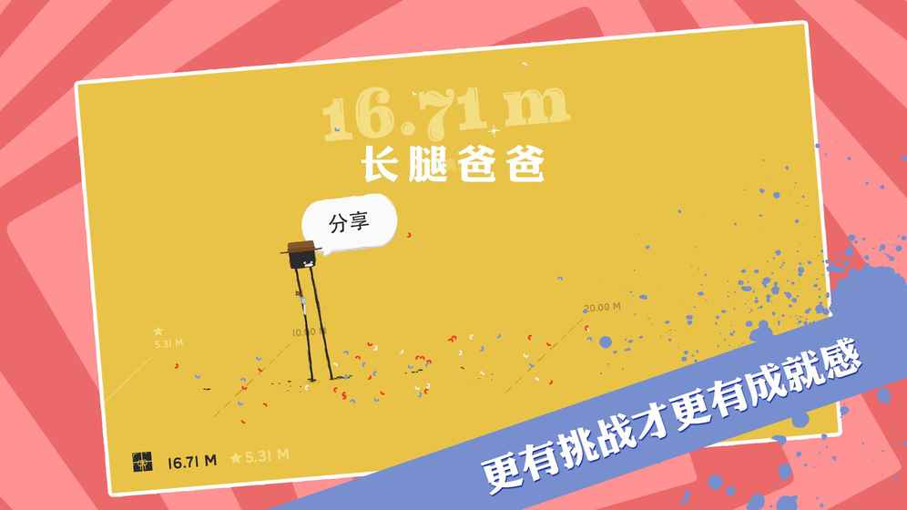 1. 操作简便,点击屏幕控制长腿步伐与频率,当超越以往极限距离时,会带来如马拉松冲线般的强烈满足感与成就感。