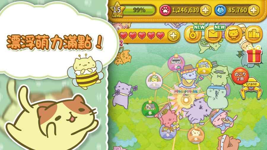 玩家需快速击碎小猫泡泡,收集更多猫咪获取积分以赢得游戏胜利。游戏中的猫咪还能换装和搭配各种装备。