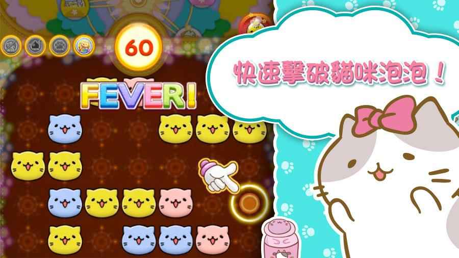 3、点击猫咪泡泡交会处,可快速达成“Fever”来累积分数。