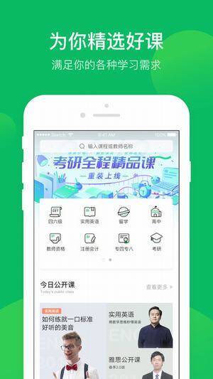 包含真题、单词、听力、口语、阅读、写作等内容,可快速速记四六级核心英语单词,解析新版四六级考试真题,还能聆听赵建昆、曲根、王菲等名师授课。