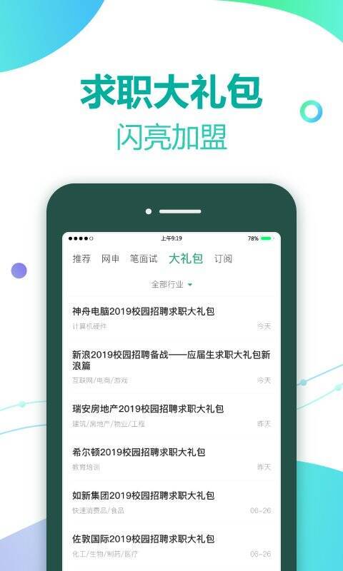 1、提供新鲜、丰富的校园招聘、名企实习、宣讲会、招聘会信息。