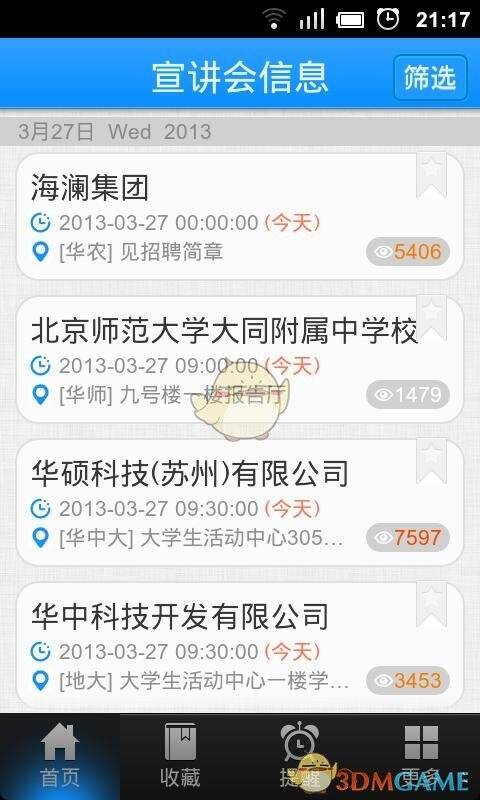 3、宣讲会——140 所高校宣讲会信息清晰、官方且实时自动更新。