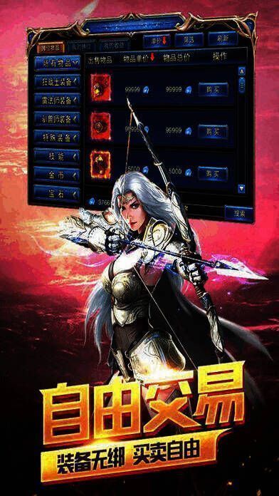 这是真正的交易市场,游戏中获得的装备均不绑定,可在交易市场自由买卖,真正实现“平民致富,白手起家”。