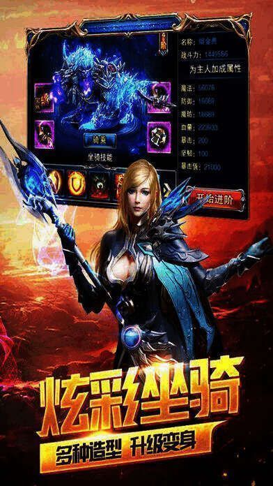 游戏拥有强大的坐骑养成玩法,辅助技能、骑乘装备、坐骑进阶等功能应有尽有;还有多种炫彩靓丽的装备,为你的战斗助力!(同时亮瞎敌对行会的眼睛)