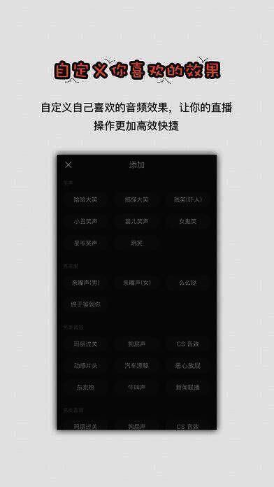 拥有丰富的内置音效,让你告别直播尴尬;支持录制变音,让声音充满魔法;支持自定义音效,可将中意的音效单独收藏;若有更多功能需求,可加QQ群(542415463)联系。
