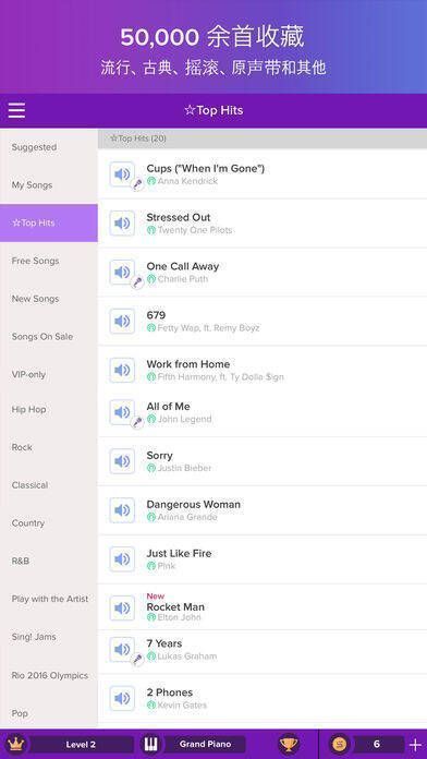 2、从布鲁诺·马尔斯到莫扎特,在排名第1的原创钢琴节奏游戏中播放热门歌曲。